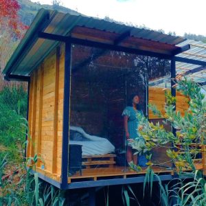 Hospedaje tipo glamping junto al río. Estamos ubicados en Ecuador, provincia de Tungurahua, cantón Pillaro, en el valle Quillan. De clima templado y de vegetación subtropical. Somos un servicio complementario de Ecofinca María Soledad empresa familiar de servicios turísticos. Tenemos un restaurante con especialidades en trucha y un bar cafetería con especialidades en chamburo, fruta silvestre de la zona. Además de algunos senderos donde pueden conocer cascadas, vertientes, animalitos, huertos, árboles etc.