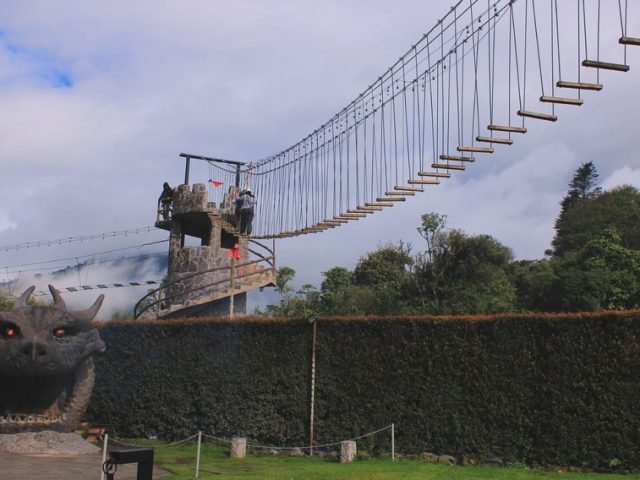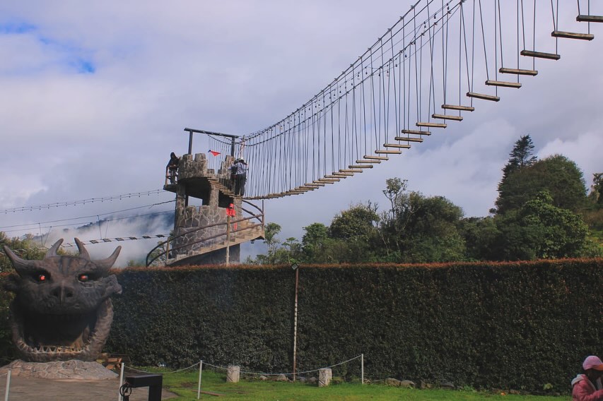 ¿Sabías que por tan solo 3 dólares puedes vivir una aventura increíble en Baños de Agua Santa? Se trata del Laberinto del Dragón, un lugar inspirado en la temática medieval donde el reto principal es encontrar la salida del laberinto, subir hasta la torre y cruzar el emocionante puente tibetano.