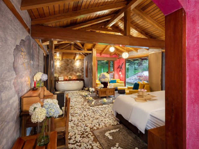 Disfrute 25 actividades de aventura: 11 caminatas, rafting, canyoning, canopy, bicicletas, caballos, viajes a través del campo, Amazonía y programas de observación de aves; 43 tratamientos en Luna Healing SPA, 4 piscinas e hidromasaje con agua caliente volcánica, Luna Restaurante con comida ecuatoriana, el Café del Cielo con 34 presentaciones de café; Luna Bar, Luna Deli, Luna Rosa, habitaciones y Suites Románticas temáticas decoradas exquisitamente.