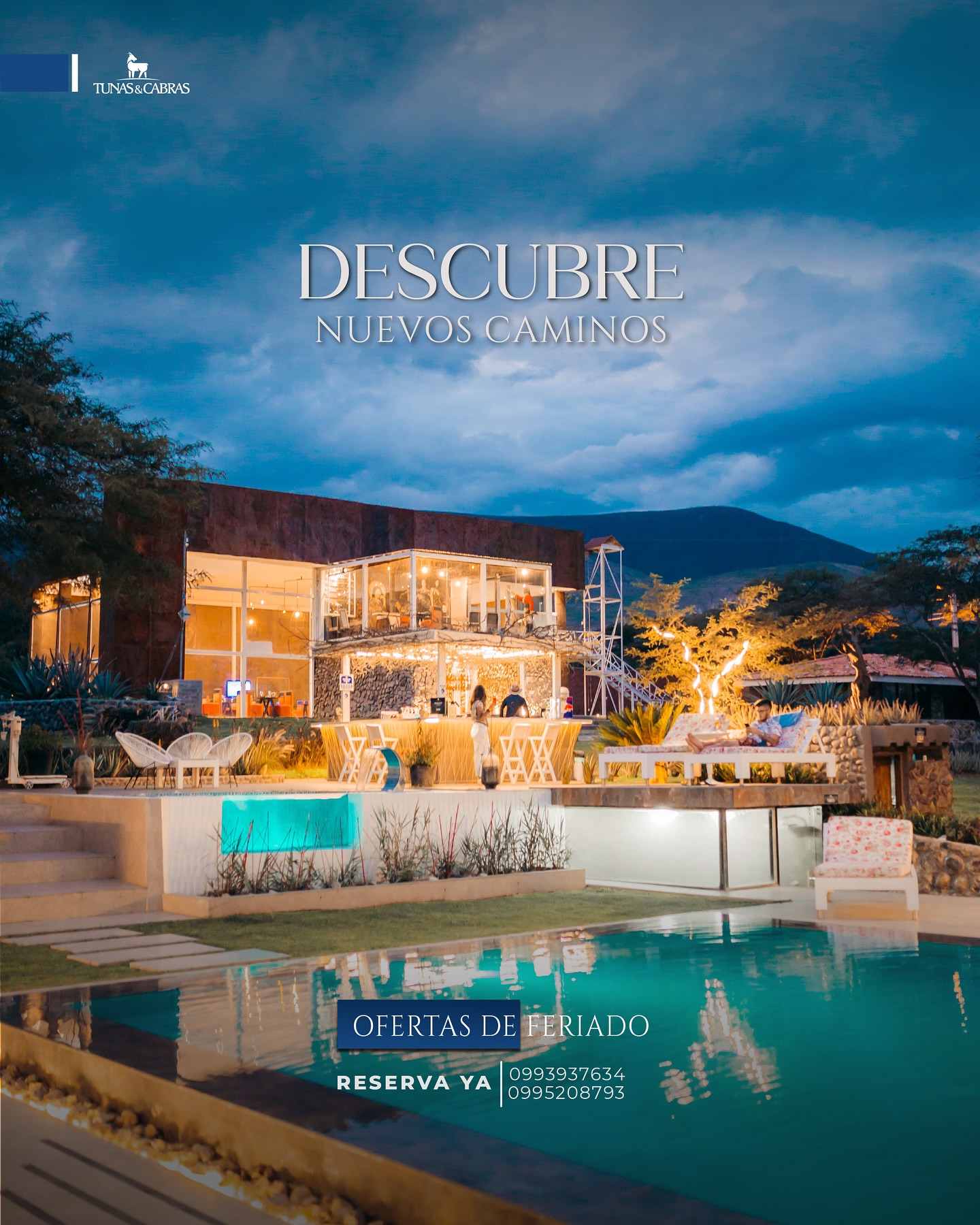 En la provincia de Imbabura en la antigua vía Ibarra- Chota- Tulcán rodeado de 7000 hectáreas desérticas se encuentra nuestro paraíso a 1.950 metros sobre el nivel del mar. Tunas y Cabras, ofrece una gran variedad de actividades y espacios para su esparcimiento